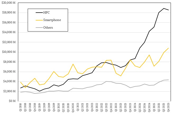 好消息是,台积电擅长从每一片代工晶圆中获取更高收益。这是因为客户别无选择,只能采用更昂贵的晶体管来实现其设计方案 —— 他们需要性能更高、功耗更低的器件,尤其是人工智能超级计算机组件,并且愿意为此支付更高的费用。这也说明人工智能已成为一种高性能计算(HPC)领域的应用,因为过去六十年来,高性能计算的核心理念一直是 “不惜一切代价追求性能”(这与云服务提供商的 “在可接受性能前提下追求最佳每瓦性价比”,或是大型企业的 “性能比需求高出 30% 以应对峰值负载,并以六至七年摊销的最低成本实现” 截然不同)。